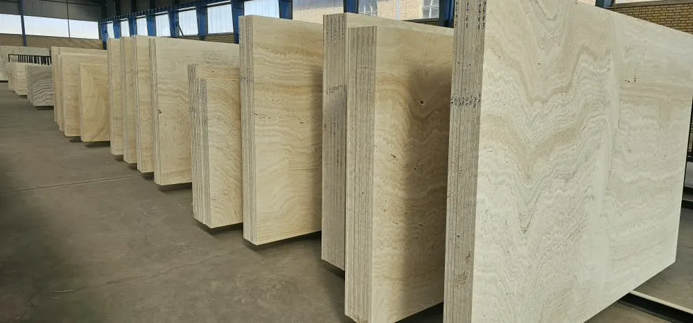 Slabs refer to large stone sheets that have much larger dimensions compared to ordinary tiles. Abbasabad Travertine Slab is cut and processed using advanced equipment and is usually produced in large sizes with a standard thickness of 2 or 3 centimeters. The main advantage of a slab is that the natural lines and texture of the stone are visible without interruption, creating a seamless, luxurious, and eye-catching appearance.